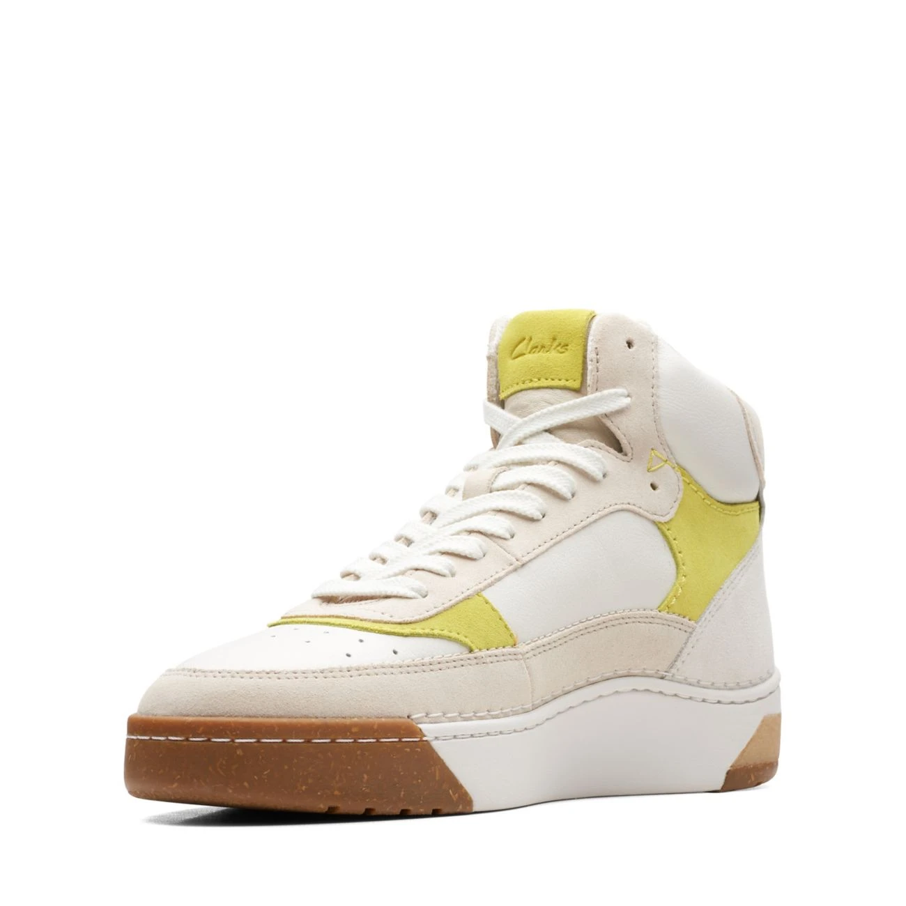 - Premium white and yellow suede and leather upper