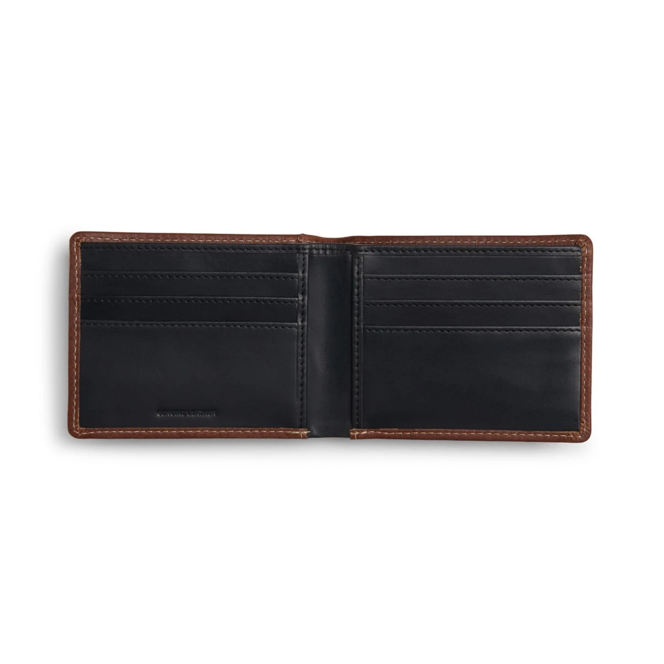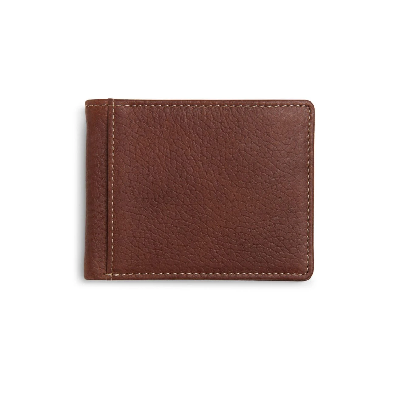 Made from rich natural grain leather in cognac, this folding wallet with an outside slot for cards is perfect for carrying your cards and IDs.